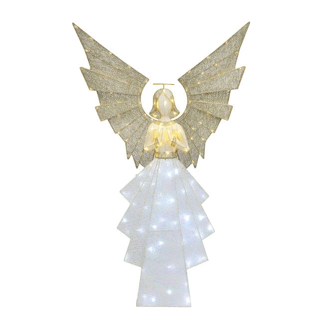 Ajoutez une lueur céleste à votre décor des Fêtes avec ce magnifique ange illuminé. Parfait pour accueillir vos invités, il est doté d’un corps en métal avec un fini à paillettes, ainsi que d’ailes et de cheveux or pour une touche brillante. Comprend 120 lumières DEL constantes blanc chaud et blanc froid. Assemblage facile et rapide. Utilisation intérieure et extérieure. Des piquets de métal sont inclus afin d’ancrer la décoration dans le sol. L’article se démonte facilement en plus petites pièces pour un rangement pratique. Cordon d’alimentation de 5 pieds pour une utilisation facile. Dimensions : 5,08 pi h. x 3,06 pi l.120 lumières DEL blanc chaud et blanc froidAssemblage rapide et facilePeut être utilisé à l’intérieur ou à l’extérieurComprend des ampoules de rechangeComprend des piquets métalliques pour un ancrage au solSe décompose facilement en petits morceaux pour un rangement pratiqueUne prise électrique est nécessaire pour le branchement ; comprend un cordon d’alimentation de 5 pieds pour une utilisation facile
