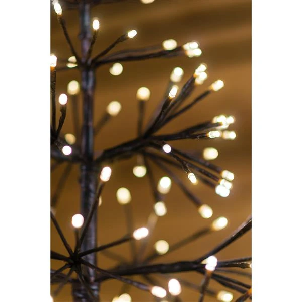 Cet arbre de Noël brun est illuminé de 380 lumières DEL apportera une ambiance chaleureuse à votre espace intérieur. Égayez votre décor ou encore ajoutez une ambiance festive à vos réceptions grâce à cet arbre artificiel, ne demandant pas beaucoup d’entretien.Adaptateur AC