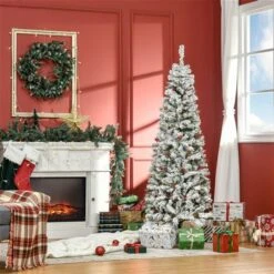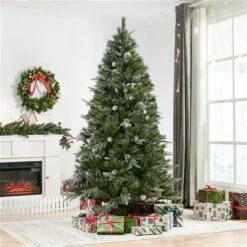 Sapin De Noël Artificiel Vert Charnu Sur Pied Par HomCom De Style Pin De 7 pi Avec Pommes De Pin