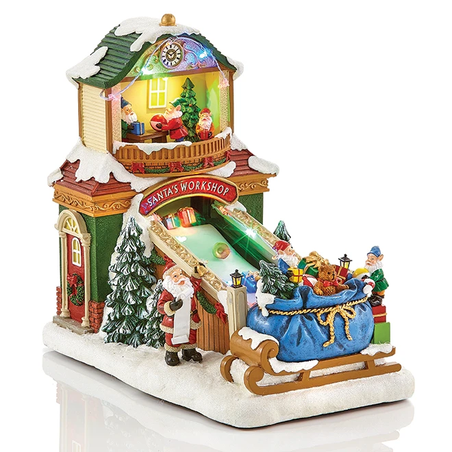 Les petites figurines de l’Atelier du Père Noël travaillent sans relâche afin que tous les cadeaux soient fins prêts pour la tournée annuelle du Père Noël! Ajoutez cet élément décoratif illuminé et musical à votre village thématique, ou donnez un caractère distinctif et coloré à un dessus de table. Article destiné à la décoration de Noël uniquementFigurine de villageArticle à couleurs multiplesConçu pour un usage intérieur seulement