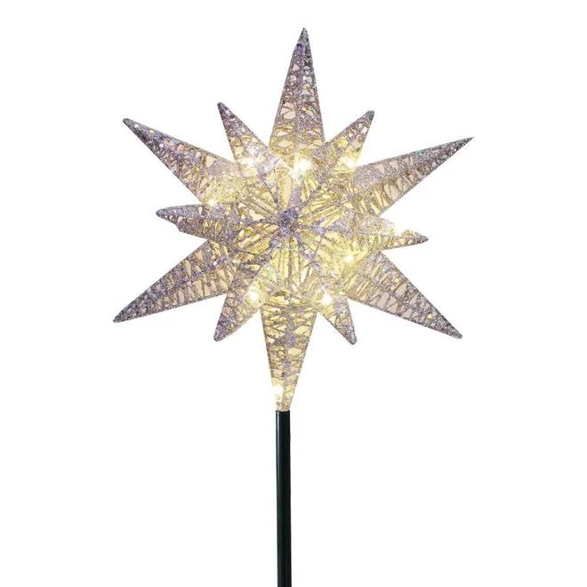 La cime d’arbre argentée brillera avec 20 lumières DEL blanches chaudes. Elle est conçue uniquement pour la décoration intérieure. L’adaptateur est inclus. Contient 20 lumières DEL blanc chaudL’adaptateur est inclusCe n’est pas un jouet, pour l’intérieur et la décoration uniquementL’article sera emballé dans une boîte en PVC