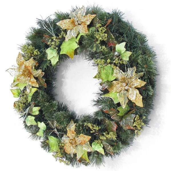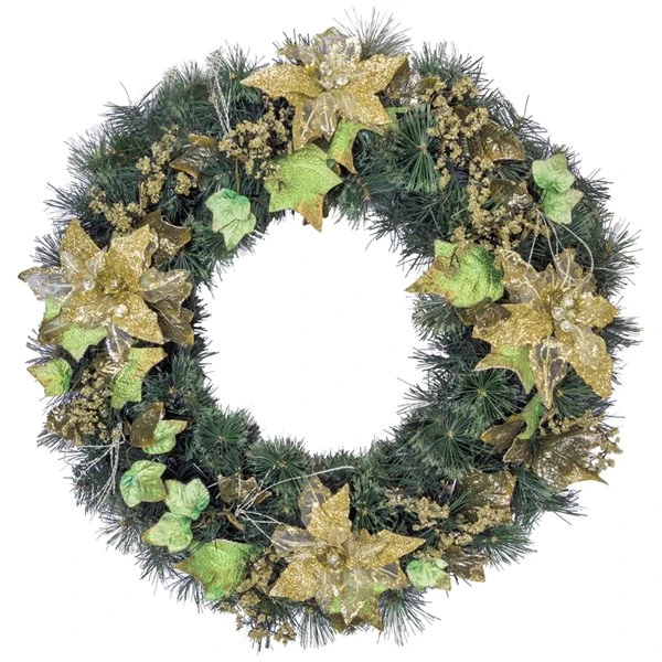 Couronne Décorée Intérieure/extérieure Henryka, 30 Po, Fleurs Dorées