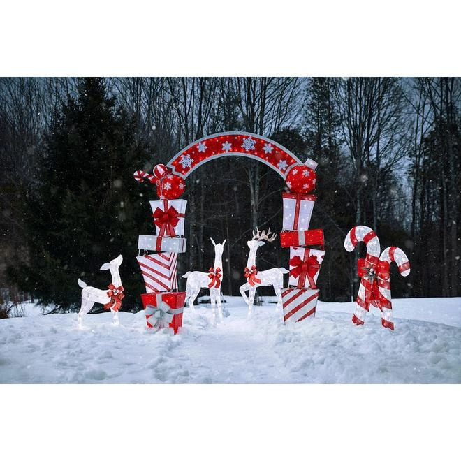 Décorez votre porte d’entrée avec cet ensemble de cannes de bonbon amusant de Holiday Living. Faite de tissu, la décoration de 45 pouces possède 105 lumières DEL blanc froid et elle est complétée avec une boucle rouge. Facile à assembler. Facile à installerLumière DEL