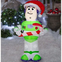 Buzz L’Éclair Gonflable Illuminé Avec Canne De Noël Disney Airblown, 3,5 Pi