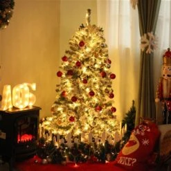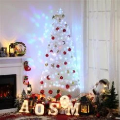 Sapin De Noël Artificiel De HomCom De 6 pi Sur Pieds Régulier Avec 220 Lumières Multicolores, Blanc