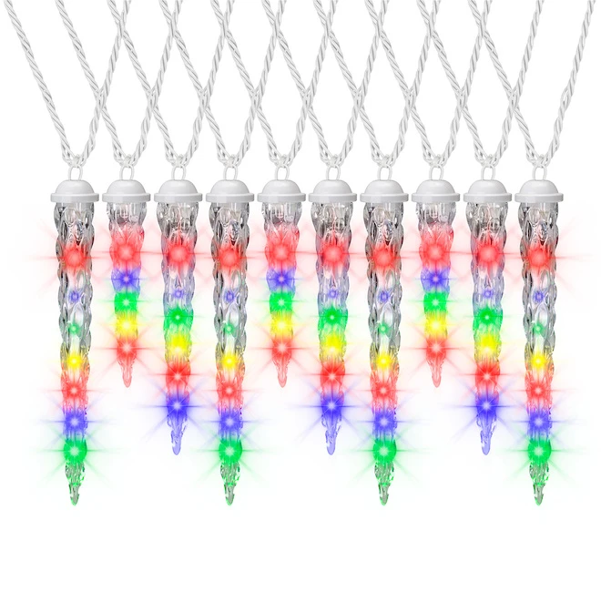 Cette année, présentez un spectacle de lumière avec ce jeu de lumière LightShow de marque Gemmy. Les lumières DEL permettent de réaliser des économies d’énergie et produisent un éclairage multicolore classique. Comportant 10 ampoules en forme de glaçon, cette guirlande lumineuse créent une élégante cascade de lumières. Les glaçons mesurent respectivement 11 po, 9 po et 7 po et plusieurs ensembles peuvent être branchés bout à bout pour personnaliser votre décor. Jeu de 10 lumières de glaçons en 3 tailles graduées?acre un affichage exquis de la lumière tombanteCrée un éclairage de vacances magique partout où vous appréciez les lumières de Noël?Propose un éclairage LED brillant et économe en énergie10 glaçonsPeut être utilisé à l’intérieur et à l’extérieurConnectez jusqu’à 18 ensembles bout à boutPour utilisation intérieure ou extérieure.