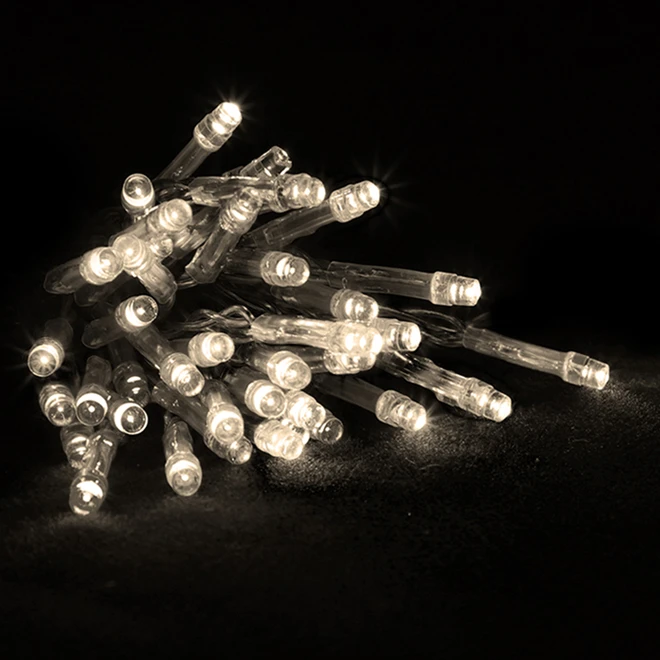 Illuminez votre décor des fêtes intérieur et extérieur grâce au jeu de lumière de marque Holiday Living. Les ampoules de 5 mm feront briller arbres, guirlandes et arrangements floraux de Noël. Chaque jeu contient 100 lumières DEL blanches, est alimenté par 3 piles AA et possède un espacement de 4 po. Intérieur/extérieurAlimenté par piles