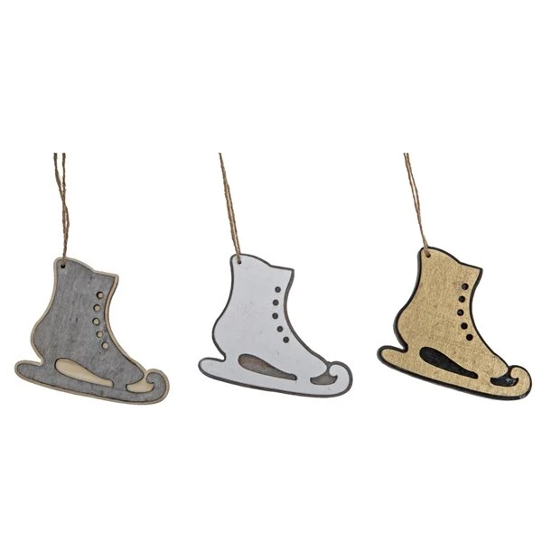 Ornements Assortis En Forme De Patin IH Casa Decor Plat En Bois, Ensemble De 12