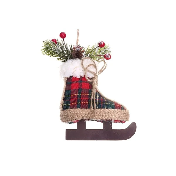 Ornements En Forme De Patin IH Casa Decor En Mousse Avec Tissu écossais, Ensemble De 12