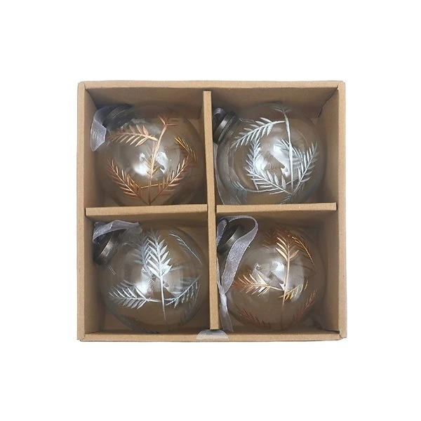 Ornements IH Casa Decor En Verre De 4 Po Avec Feuilles Gravées Or Et Argent, Ensemble De 4