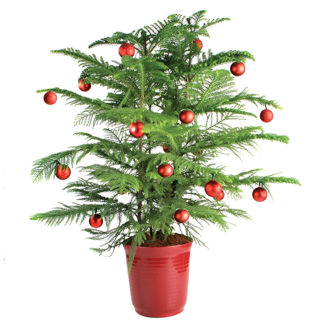 Conifère facilement reconnaissable, cet arbre décoratif de type araucaria est une espèce endémique de l’île de Norfolk, à tronc vertical et à branches symétriques. Celui-ci pousse bien dans un sol profond, à condition d’avoir un accès fiable à l’eau. Vendu en pot, il peut être gardé pendant une période de deux à trois ans. Planté dans un jardin, la partie supérieure peut être coupée chaque année, pour en faire un joli sapin de Noël. Il se peut que le produit final diffère des images présentées. La plante d’intérieur Norfolk Island Pine est livrée prédécorée, ajoutant une touche de joie de Noël à votre maison ou votre bureauPousse bien dans des zones partiellement ensoleillées avec 3 à 4 heures de lumière indirecte par jour (instructions d’entretien incluses)Cette plante à croissance lente peut être appréciée pendant des années, même après les fêtesOn peut en profiter à l’intérieur pendant de nombreuses années avec un entretien approprié