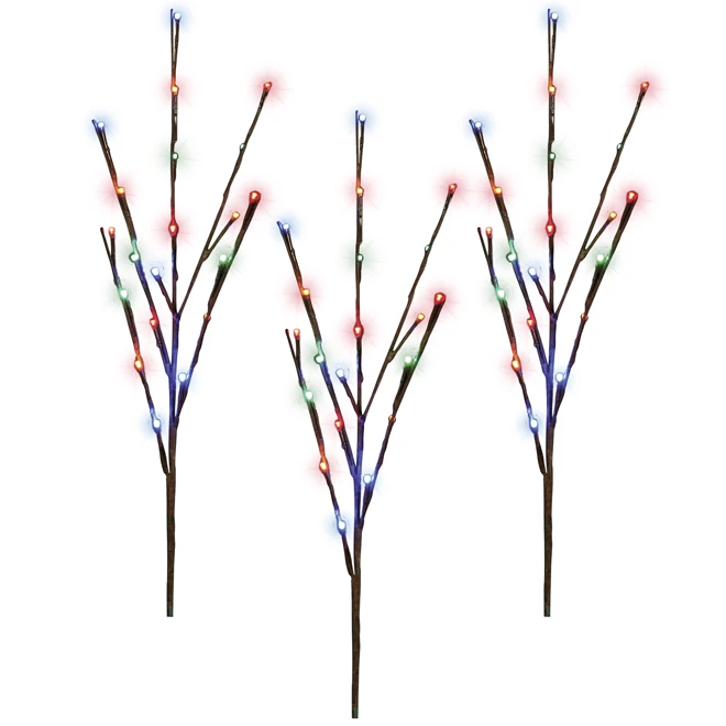 Ajoutez une touche décorative à votre décor extérieur avec cet ensemble de 3 piquets avec branches illuminées. Les lumières DEL multicolores longue durée offrent un joli effet scintillant. Effet scintillantDEL durable