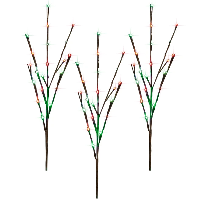 Ajoutez une touche décorative à votre décor extérieur avec cet ensemble de 3 piquets avec branches illuminées. Les lumières DEL rouges et vertes longue durée offrent un joli effet scintillant. Effet scintillantDEL longue durée