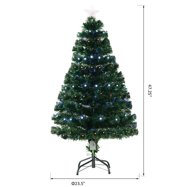 Cette saison des fêtes, passez plus de temps à célébrer et moins de temps à entretenir et à nettoyer avec cet arbre de noël artificiel pré-éclairé de 4 pi de HomCom. Ce modèle est doté de fibres optiques et de lumières DEL intégrées qui changent de couleur et se complètent pour un magnifique effet afin de donner une sensation des Fêtes authentique.Éclairage à fibre optique et à DEL intégréLes motifs lumineux prédéfinis sont contrôlés par un boutonComprends 8 modes d’éclairage : combinaison, vagues, séquentiel, poursuite/flash, fondu lent, scintillement/flash et fixeComprends 3 intensités de lumière