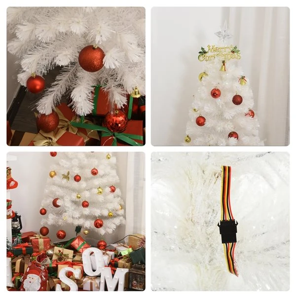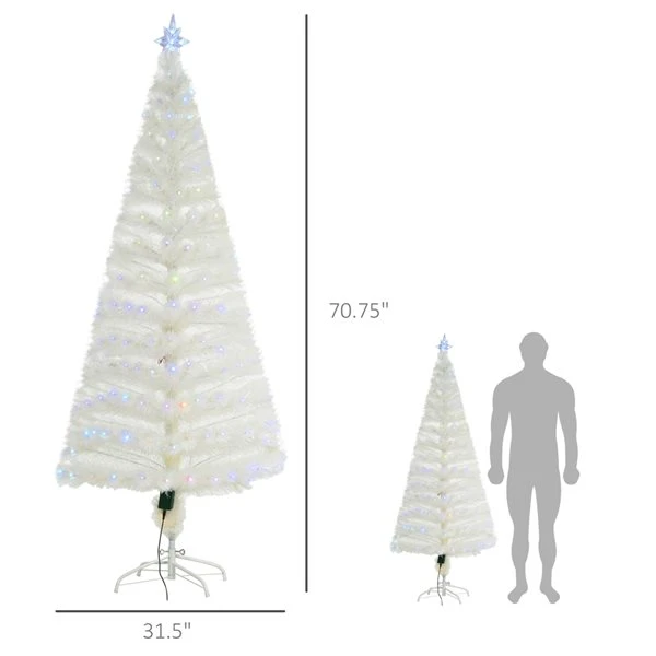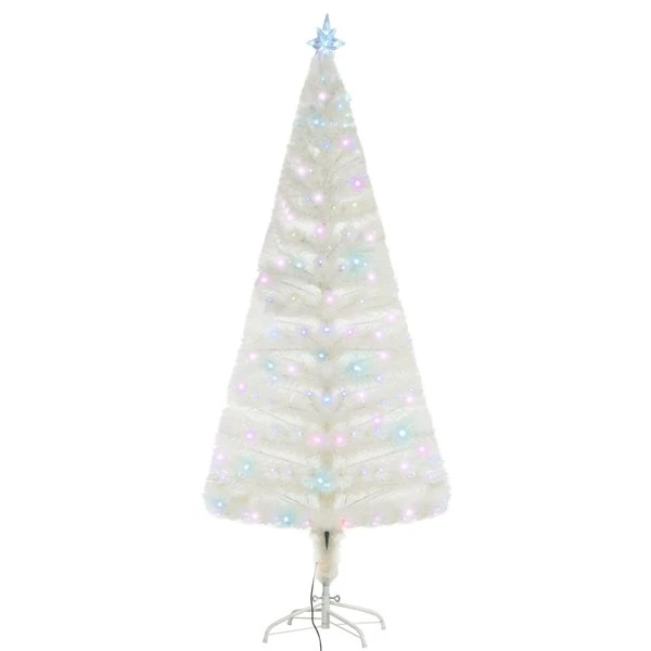 Sapin De Noël Artificiel De HomCom De 6 pi Sur Pieds Régulier Avec 220 Lumières Multicolores, Blanc