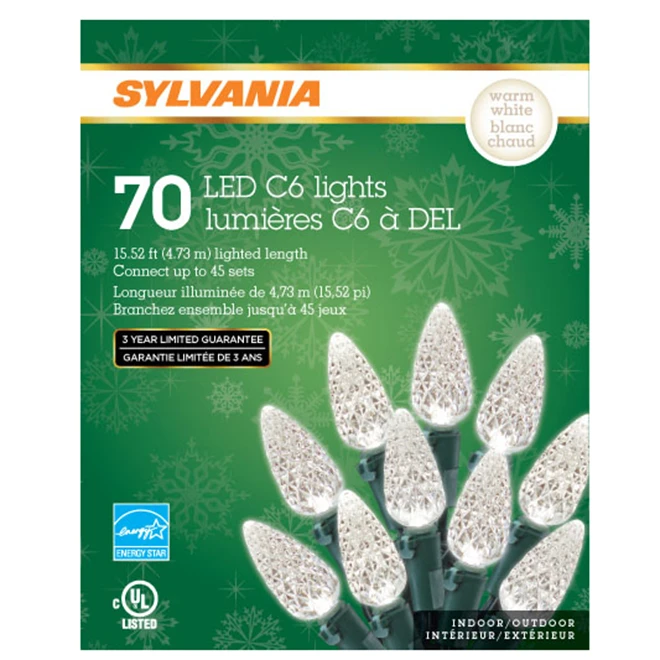 Sylvania Jeu De 70 Lumières, Intérieur/extérieur, DEL C6, Blanc Chaud