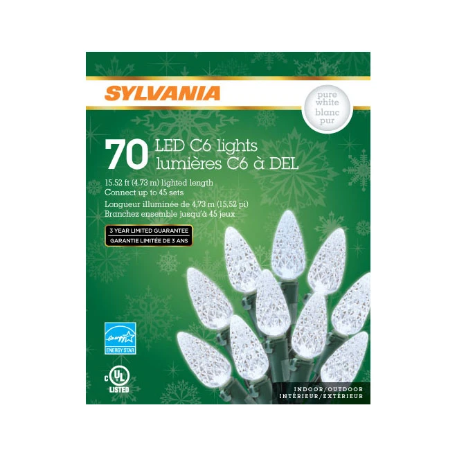 Sylvania Jeu De 70 Lumières, Intérieur/extérieur, DEL C6, Blanc Pur